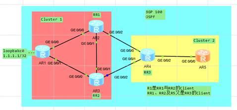 1)R1分别是RR1与RR2的Client, RR1与RR2的Cluster_ID均为1;