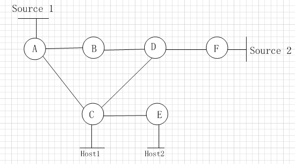 source2到host1走的路径是:source2–>F–>D–>C–>host1